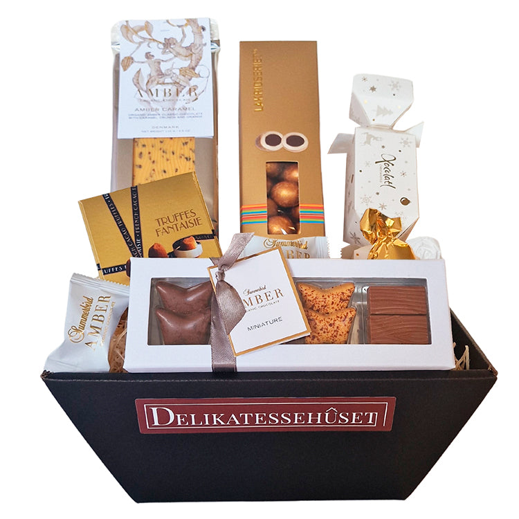 Så bliver det næppe mere yndigt! Denne julekurv byder på lækre søde sager fra nogle af de bedste danske producenter, perfekt til at sprede hygge og julestemning hos familie, venner eller kollegaer.
