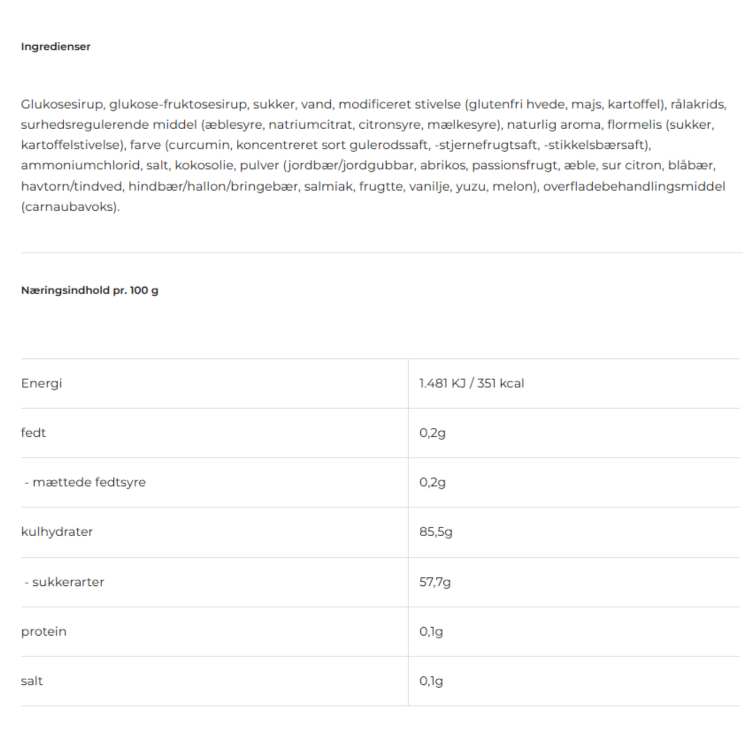 Antal vingummier: Ca. 5-6 pr. pose