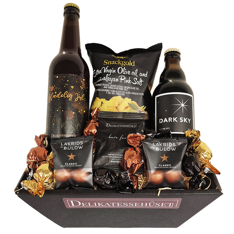 En oplagt gavekurv til jul til familie, venner eller kollegaer, der sætter pris på både små lækkerier og god juleøl.