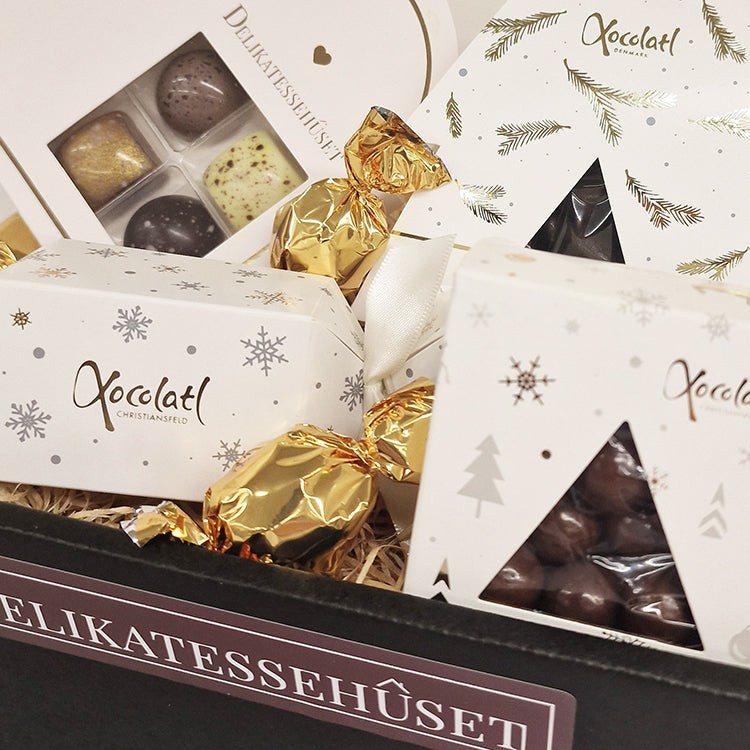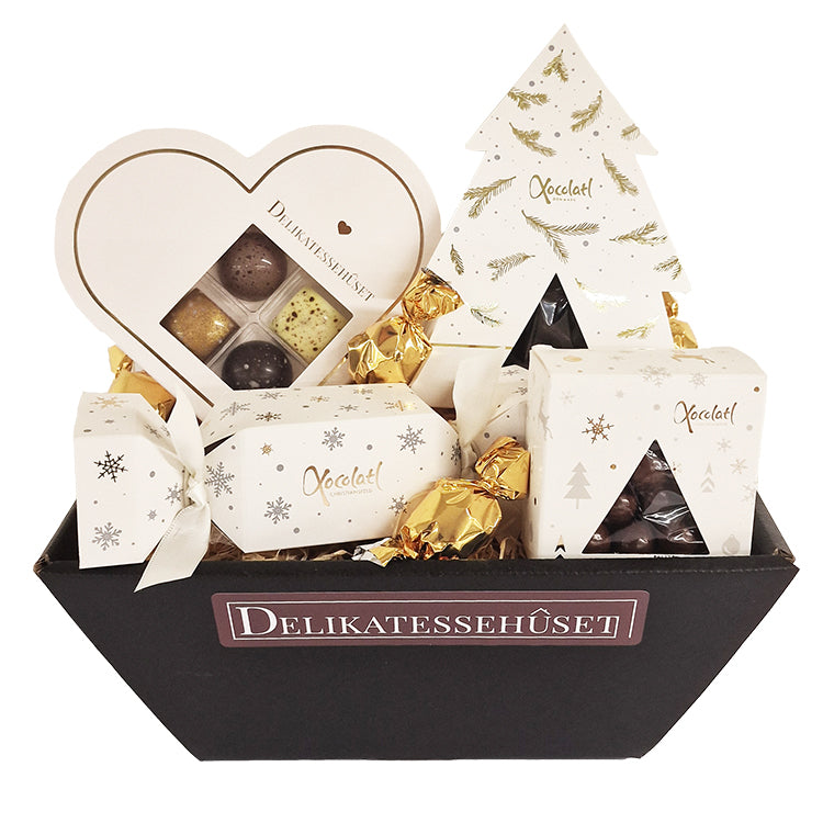 Her får du en lækker julekurv med lækre søde og sprøde sager fra Xocolatl.